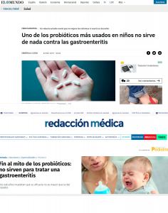 El problema es que estas noticias no sólo crean dudas y escepticismo entre los profesionales sanitarios sino también en el consumidor, ya que rápidamente son difundidas en los medios de comunicación habituales sin esperar a las opiniones contrastadas de expertos y asociaciones científicas, haciéndose eco de ello, incluso, el mismo día en la prensa general (Figura 1). Estas informaciones aisladas y no cotejadas en otras fuentes nos pueden llevar a una conclusión errónea: “si los probióticos no son eficaces para la diarrea (opinión muy discutible y en continua revisión), tampoco lo son para el resto de aplicaciones clínicas”.